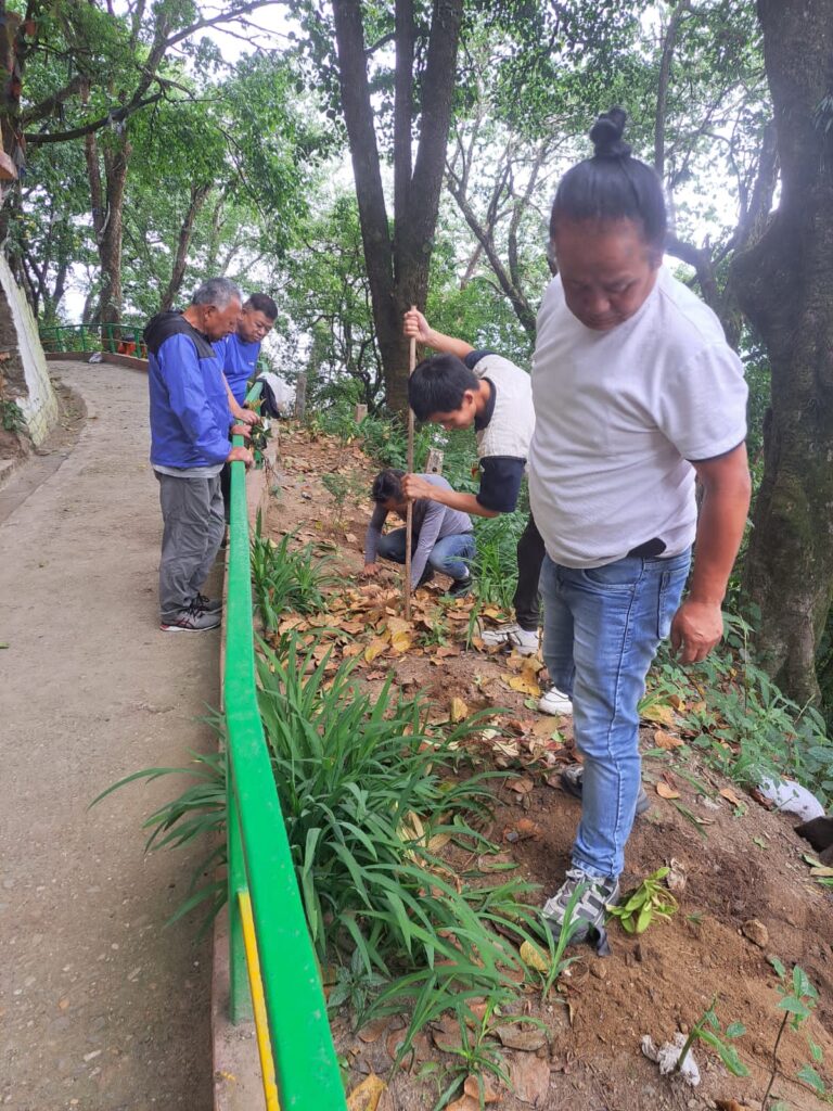 June 11, 2023: On June 11, 2023, Sunday, Environment Day was observed under the initiative of the Central Committee, KKRSS. On this occasion, many tree saplings like Rodhodendron, Katus, etc. were planted in the Mahakal Mangkhim compound. KKRSS is regularly practising the Tree plantation programme on World Environment Day, as Khambu Rai is by default the nature worshipper community.