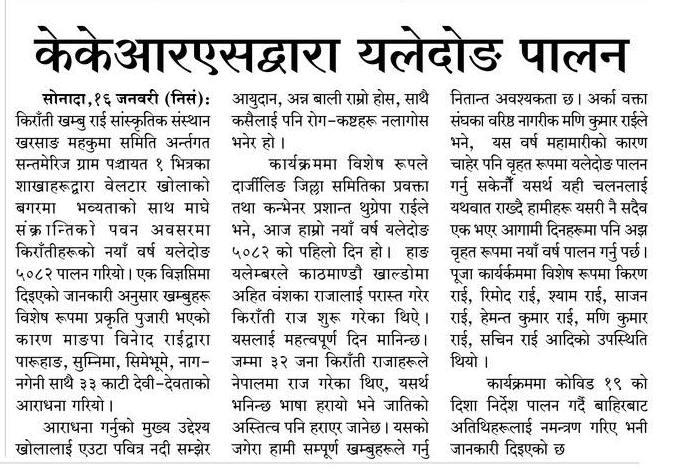 January 15, 2022: All the Sakhas within the St. Mary’s I Gram Panchayat celebrated Yeledong 5082 at the bank of Beletar river. Mangpa Binod Rai conducted the rituals of Khambu tradition during the occasion.